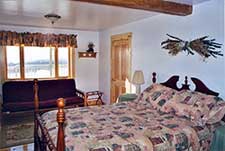 Our first room will impress you with its century-old honey-colored flooring that gleams in the natural light and its many windows that capture the sunrise and the magnificent scenery of the St-Benoît-du-Lac Abbey, with Mount Owl's Head and Lake Memphrémagog as its backdrop. |